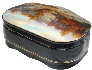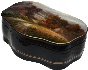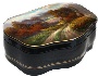 |               |  |  This early Fall landscape scene was pained by talented Alexander Simonov (born in 1960) from the village of Fedoskino. It features locality typical for Russian countryside. It is filled with hills covered with grass and bushes, the small winding path crossing a small forest. We can see rays of sun are coming from the cloudly skies and getting to the fields.Different shades of gray, yellow and green suitable for reproduction of an autumn day have been used here. Mother-of-pearl is inlaid into one part of the composition. It is inlaid in the portion of the sky/forest. With the help of mother-of-pearl the artist has achieved the beautiful effect of the sky's brilliance. The scene is framed with a gold line, the same as the sides of the box -they are decorated with 2 parallel gold lines.