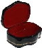 The exterior bottom of the box is covered with black lacquer and the box's interior is covered with red lacquer.