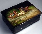 This beautiful box showing a summer troika has been painted by Fedoskino painter Smirnova O.P. This subject is traditional for Russian lacquer miniature art. This tradition sprang from the very beginning of lacquer ware production in Russia when the first lacquer workshop was founded by Petr Korobov in the village of Danilkovo (now Fedoskino). At that time the themes of peasants' everyday life were very popular among painters. Then troikas (carriages drawn by three horses) were used as modes of long distance transportation and troika stations were built on all of the main roads between all the major cities like Moscow, St. Petersburg, Vladivostok, and so on. During the long winter months taking a troika ride for fun was a common practice.