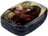 |   |  |  This is a splendid work of V. Belov from the village of Fedoskino. It is painted in the realistic style, and features two harnessed steeds. To paint the steeds the artist uses two distinct black and white tones, to create a contrast on each of them.The scene is framed with the elegant gold pattern. The exterior of the box is dark blue with light blue patches, while the interior is traditionally red.