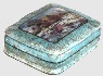 The landscape is painted in the realistic style in delicate white and blue oils. Mother-of-pearl is set into the sky to create the radiant glow of the sunset, and into the big puddle that reflects the sunset glow.