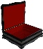 The box is constructed from paper-mache. Black lacquer covers the exterior and red lacquer covers the interior of the box. A hinge is fastened to the top of the composition. The box rests on wavy platform. The work is signed with the name of the artist.