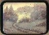 Description: This winter peaceful landscape is a creation of the talented Fedoskino artist Dmitriy Tipyakov. It is called "Winter Evening" and shows a panorama view to a small village hidden somewhere within a forest.