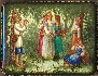 There is a good feel of ancient Russian tradition in the scene. The characters are dressed in traditional Russian costumes. The ladies are dressed in sarafans decorated with gold embroidery, bright ribbons are plaited into their braids; Lel has ancient Russian shoes "lapti" (bast shoes) on his feet. The mood of the composition is peaceful and relaxing and the characters are given a very gentle and tender treatment. They fit perfectly into the idyllic forest, full of flowers, shrubbery and trees.