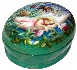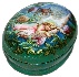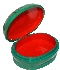 The box's exterior is beautifully decorated. Gold powder covers green surface of the box's exterior forming an attractive pattern. The box's interior is covered with red lacquer.