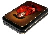 The portrait is framed with a gold line, as well as another gold line is wrapping around the box's sides.