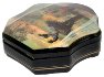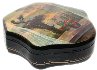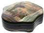 Description: Tatyana Tipyakova of Fedoskino is the accomplished master responsible for the gorgeous artistry in front of you. On the box's lid the artist has expressively painted the beautiful landscape which we can see from an opened window. It is a warm, late Spring evening. It emanates golden rays and makes the sky shimmer with red, orange and yellow tones. The waving river reflects the fire of the skies and glow with red and orange undertones... A nest of storks- like a symbol of the future birth only undertones a peaceful mood!