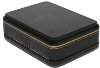 The scene is framed with a thin gold line. Two parallel gold lines wraps around the bottom part of the box's body.