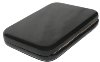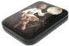 The box is constructed from paper-mache. Black lacquer is used to paint the exterior of the box while red lacquer completes the interior of the work. A hinge is fastened to the left of the composition, and the box rests flat.