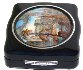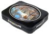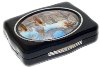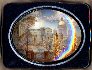 In the foreground we can see the picturesque embankment of Neva River while in the background the St. Isaac's Cathedral. The drawing is fragile, and even transparent. Cool blues and grays splendidly reproduce the atmosphere of the Northern town built on shore of the Gulf of Finland. A piece of mother-of-pearl is inlaid in the portion of the sky to create the illusion of the sun light struggling through the dense clouds. Gold paint is used to highlight the architecture painted in the foreground and the domes of the cathedral.