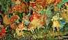 Description: This incredible box was painted by the highly talented Yevgeniy Vlasov. It is an original work that contains a scene from the Russian fairy-tale "Sivka-Burka". It tells about the adventures of the youngest of three brothers, Ivan the Simpleton. For his courage and easy temper, his father presented him the magic horse, Sivka-Burka that was ready to serve Ivan. With the help of Sivka-Burka's magic powers, Ivan managed to jump to the highest tower in the king's palace, where the king's daughter was standing, and take the ring she was holding. This made him the victor in a contest, and for performing this feat he was allowed to marry the tsar's daughter.