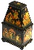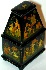 The box is made out of paper-mache. The box is unhinged and rests on four legs. The box's exterior is decorated with elaborate gold ornamentation. The artist signed his name on the top surface of the box.