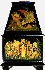 Green and brown tones dominate here. Gold is used with great intricacy and delicacy to develop the finer elements in the scene. Petrov paints with excellent detail here, combining a great deal into a small space without losing any clarity.