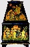 Description: Yuriy Petrov from the village of Palekh is the talented craftsman responsible for this exquisite box. It is dedicated to the creations of the great Russian poet Alexander Pushkin. Each of the box's sides including the lid, the lid's sides and the box's sides are covered with the scenes from different tales written by Pushkin. Here we can see fragments from such popular fairy-tales as the Sleeping Princess; the Golden Cockerel; Ruslan and Ludmila; the Fisherman and the Magic Fish; the Tale of Tsar Saltan; Pop and Balda; and Tale of about Bears. Here we can come across such recognizable characters as Tsar Dadon, Prince Yelisey, thirty three bogatyrs, the Clever Cat that walks along the chain, and many others.
