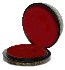 The box is constructed out of high-grade paper-mache. The exterior of the piece is painted with black lacquer and interior is painted with red lacquer. The lid is hinged and the box stands on flat bottom. The work is signed with the artist's name and the village of Palekh.