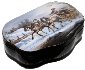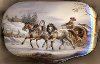On this box we can see a coachman controlling the three horses. On the back of the composition we can see beautiful winter landscape and houses of the Russian village.