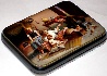 Description: This idyllic scene has been painted by E. Marochkina from the village of Fedoskino. Here we can see the happy family feeding a hen. Tender emotions are reflected on their faces. It's very hard to reproduce people's feelings painting with an ultra-fine brush. The interior of the room is filled with a lot of brilliantly painted details including the jars, the fire-place with the burning fire inside, various kitchen utensils hanging on the walls that make the composition complex and complete.