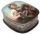 The box is constructed out of paper-mache. The box has a hinge from the left of the composition, and rests on a flat bottom. The work is signed by O. Zayakina.