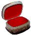 The artist continues to paint the blue sky tinged with a pink gleam of the setting sun on the box's sides. The lower part of the sides is decorated with a gold floral pattern accented with red oils. The box's external bottom is covered with dark lilac paint, its interior is traditionally red.