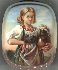 Description: The talented young artist Olga Zayakina from the village of Fedoskino created this portrait of a peasant girl. She holds the jar filled with fresh milk that she carries for her parents who work in the field.