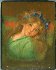 Here the artist depicts a portrait of a young girl with a blue ribbon in her hair.