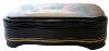 The painting is framed with a band of gold paint.The box's sides are decorated with two parallel gold lines.