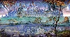 The artist makes supreme usage of the overlay method of application. This is done by painting one particular portion of the piece, thinly coating it with clear lacquer and then continuing on with the compositional process. By doing this, the artist creates three dimensional depth, perspective and beautiful texture. The scene is dream-like. A fantasy of architecture!