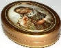 The portrait is framed with a wide gold line. This gold line is encircled with the line painted in light mustard oils; and the light mustard line is encircled with another wide gold line. The wide gold line can be also found wrapping around the box's sides.