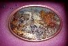 Description: This splendid rectangular box is creation of Fedoskino artist Igor Isaev. Its exterior is covered with aluminum powder, and then sprinkled with violet paint. The lid is decorated with the oval scene painted in oils over a large piece of mother-of-pearl (unbroken shell). It depicts the flock of martins (or "town swallows") flying over an old Russian town. It is autumn, and the birds leave the Russian countryside to spend the cold winter in south countries. The trees are covered with bright orange foliage. Gold paint is used to make the faded orange foliage more expressive. The wooden architecture built according to the fashion of 19th century is splendidly painted here. Isaev painstakingly drawn the carved wooden ornamentation on the roofs of the houses, and detailed each wooden board the houses are built out of. As this scene is painted over the mother-of-pearl, it sparkles like a diamond in the bright sun. The box's lid is also adorned with paintings of martins that are meant to be the members of the flock of martins drawn within the oval scene. They fly from the left side of the box's lid towards the oval scene, and seem to penetrate into it. One of the birds is ready to swallow a fly, - one of our enlarged photos feature this moment.