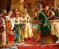 The work is called "Choosing a Bride", and features the ritual of choosing a bride for a tsar in medieval Russia. To arrange this important procedure, the most beautiful girls of the country, both noble and plain, were asked to come to Moscow to appear before the tsar. The number of arrived candidates may achieve 1500 persons. To gather such a considerable number, elections were held not only in the districts neighboring Moscow, but also in remote districts of the country. In this case "the accordance instructions" had been sent: the girls must be definite centimeters in height and have definite features. Then, the candidates came to the tsar for review, and he chose only one of the girls, the others were let off with peace and presents. Very often the Russian tsars chose brides from plain families, considering feminine beauty as the most important criterion of their choice.