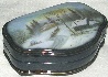 The box is constructed out of paper-mache. It has a hinge from the top of the scene, and rests on legs. Signed with the artist's name and the village of Fedoskino.