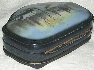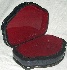 The box's exterior is covered with black lacquer; to make the box look more appealing the black lacquered exterior is studded with tiny and very thin blue-silvery veins. The interior is traditionally red.