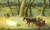 The artist has splendidly combined deep blue and yellow oils to reproduce the atmosphere in the dark forest lit by moonlight. This effect is strengthened by mother-of-pearl set into the moon, trunks of the trees and the area of ground located in front of the horse. Gold paint creates a source of light in the windows of peasant houses. Gold and silver dust is spread throughout the scene to create a magic glistening of the snow.