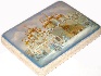 Description: This attractive box called "The Cathedrals of the Moscow Kremlin. Moscow, the year of 2000." has been painted by Rinat Yunusov from the village of Fedoskino. In the foreground he has painted the picturesque view of the Assumption Cathedral (on the right) and the Church of the Deposition of the Robe (on the left), while in the background he has drawn the Archangel Cathedral. The scene is brilliantly painted in delicate light blue oils suitable for reproduction of a winter scene; gold metal paint highlights the cupolas of the cathedrals. Mother-of-pearl shines through the Assumption Cathedral.