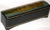The box is constructed with the original shape. The sides are decorated with 2 golden lines. Black lacquer is used to paint the exterior of the box while red lacquer completes the interior of the work. The box has a hinge from the top of the composition and rests on four legs. The box is signed with the artist's name and village on the interior of the lid.