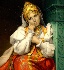 As in many of his pieces, like "The Boyar's Wedding", Makovsky focused on lavish details of historic dress to create a feeling of exotic Russian history and romance. This interpretation of "By the Stove" is by Fedoskino artist Sidorov is perfectly done. An incredible realism has been achieved through choice of colors, attention to perspective, and meticulous working of the details of texture and shape. The stove has been beautifully decorated, and shaded perfectly. The background shows a nondescript wall painted in soft reddish-brown tones. This helps to focus the attention on the true star of this painting--the girl. She is shown sitting quietly, holding her head delicately with her hand. The girl's dark eyes are painted in such a way that they seem to look through you, as if she is deep in thought.