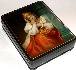 Description: Few words exist that can effectively describe this excellent box by Fedoskino artist Sergey Sidorov. Radiating with the brilliance of gold metal paints, wonderful oil paints and intricate detail, this composition is a reproduction of an oil-on-canvas painting by Russian artist Konstantin Makovskiy (1839-1915). A popular composition, this is a masterful interpretation and can be a highlight of any collection!