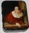 Description: The famous canvas-on-oil painting “The Wife of a Treasurer” created by Vasily Tropinin (1776-1857) in 1841 inspired Bebikov to create this splendid box. The original is exhibited in the Russian Museum in St.-Petersburg.