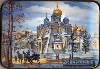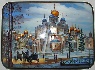 Description: The well-known Fedoskino artist Mikhail Papyonov has painted this majestic view of the Archangel Cathedral situated within the territory of the Moscow Kremlin. Its history dates back to the 13th century when a wooden church stood on the place of the modern Archangel Cathedral. It was built by Mikhail Khrabry (Courageous), Alexander Nevsky's brother, to commemorate his guardian, Archangel Mikhail. In the time of Prince Ivan Kalita it was replaced with a white stone church, the largest in the Kremlin. Prince Ivan Kalita was the first to be buried on its premises. In 1505-1508, in the time of Grand Prince Ivan III, the time-worn edifice was demolished to be replaced with a cathedral. Designed by the Italian architect Alevisio Novy, it has survived to date. The cathedral bearing the name of Archangel Mikhail, the guardian of princes and Russian warrior, was to become the sepulcher of grand princes. The Archangel Cathedral served as a dynasty sepulcher right until Peter the Great relocated the Russian capital to St.-Petersburg where monarchs would be buried thereupon. At present, the Archangel Cathedral of Kremlin serves as a museum housing the ancient tombs and providing a fine example of medieval décor. Church serves are also held here.