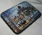 The box is made out of paper-mache. Black lacquer covers the exterior and red lacquer covers the interior of the piece. The lid is hinged from the top of the scene, and the box rests on a flat bottom. Signed with the artist's name, the village of Fedoskino, the title (“Old Moscow”) and the year of 2005.