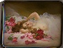 Description: This beautiful box that shows the nude lying among pink roses is a stunning creation of Ivanov. The fragile flowers help to accentuate charm and youth of the depicted woman. The wispy veil that covers her porcelain skin is painted so skillfully that it is seems to be transparent. To gaze upon this scene is an absolutely luxurious experience.