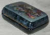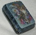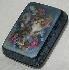 Description: This small box is a creation of I. Ilyina. It shows a charming kitten hunting after the butterflies in the garden. The scene is drawn in the realistic style using various tones of oils. Gold paint is used to paint the butterflies hovering over the flowers.