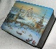 The scene is framed with a gold line; the box's sides are decorated with two parallel gold lines.