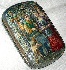 At first sight at this box you can recognize Wagner's unmistakable mixture of fairy tale style realism and rich colors. Silver and gold paints have been used as an underlayer for the oils to create a unique glow and breathtaking depth. On the box's exterior bottom you can find one more scene. Here the artist has painted the still life with a jug, a knife and apples. The box's exterior is covered with silver paint but black lacquer is apparent in some areas (the box's exterior imitates coloring of a stone). The interior is traditionally covered with red lacquer.