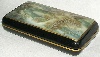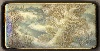The scene is brilliantly painted in light blue tones. Gold dust is used to create a sparkle of the snow on the branches of the trees. The edges of the lid are decorated with a gold line; another gold line wraps around the box's sides. The box's exterior is covered with black lacquer mixed with gold and silver dust; its interior is traditionally red.
