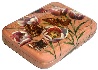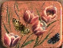 Description: Davydova from the village of Fedoskino has created a series of boxes that show butterflies hovering over flowers. This beautiful box is also painted on this theme.