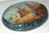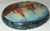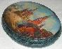 The scene is painted in the realistic style with a photo quality precision. Gold paint shines through the architecture, and is also used to highlight the clouds. The buildings and architecture are expertly sketched and drawn with the correct perspectives. The box's exterior imitates a stone color (light blue veins are scattered against the black lacquered surface). The interior is traditionally red.