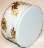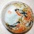 The box is round-shaped and covered with white lacquer. On the box's lid Rogatova has painted a couple of red-breasted bullfinches sitting the branch of mountain ash covered with bright red, ripe ashberries. On the box's sides she continues to paint branches of mountain ash. The white lacquered background helps to imitate Russian snow-covered expanses, and to focus the viewer's attention on the excellently painted birds and the ashberries. Shining gold paint is used to draw some of the leaves, and to enrich the color palette. The box's interior is covered with gold powder. This is an exceptional work.