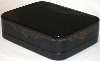 The scene is framed with two parallel gold lines; two parallel gold lines accompanied by gold filigree designs can be also found wrapping around the box sides.
