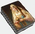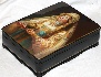 Description: Renowned Fedoskino painter Dubovikova has crafted this exquisite portrait of a young girl in traditional Russian attire.